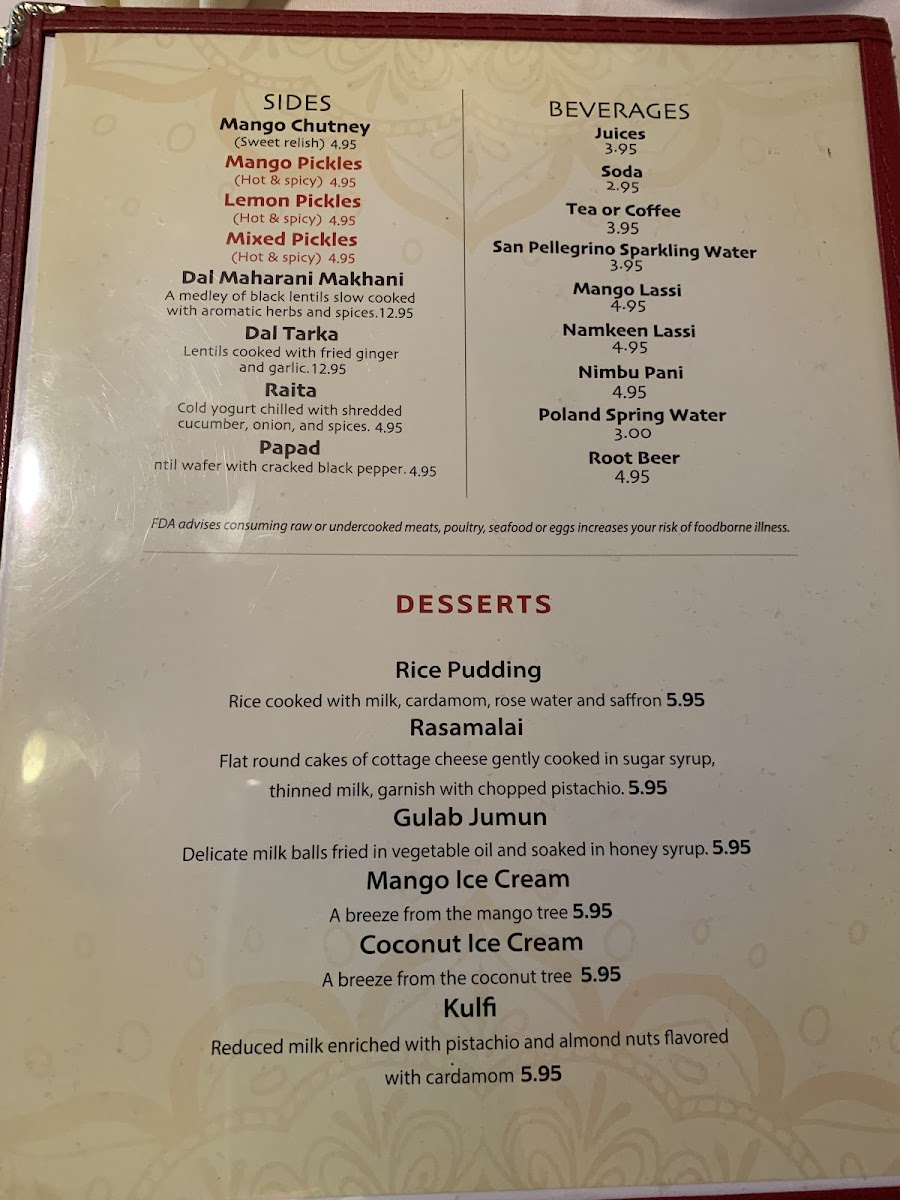 Priced per person. Served with samosa (1), sag paneer, subji masala, nan, and rice pudding.