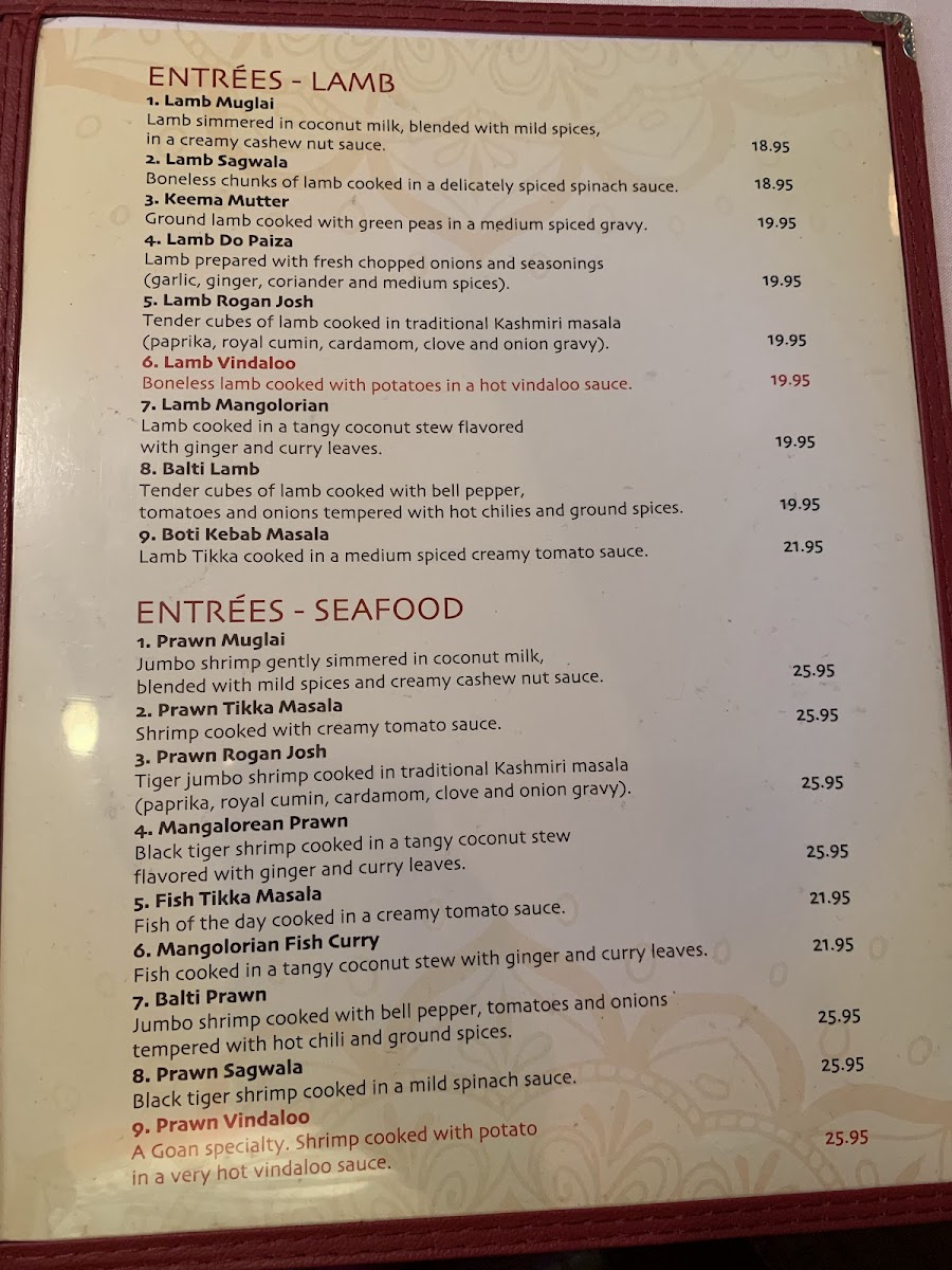A Goan specialty. Shrimp cooked with potato in a very hot vindaloo sauce.